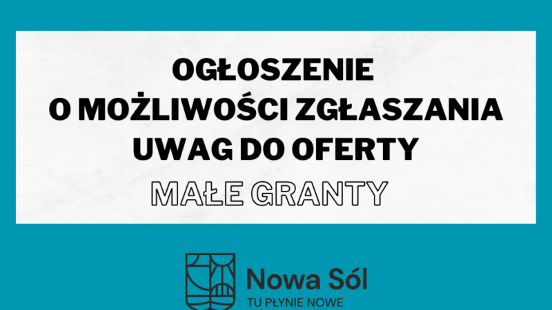 Uwagi do oferty można zgłaszać do dnia 21.04.2026 r. (decyduje data wpływu do Urzędu)w formie pisemnej w Punkcie Informacyjnym Urzędu Miejskiego przy ul. Piłsudskiego 12, ustnie do protokołu w Wydziale Spraw Społecznych – ul. Kasprowicza 12 lub drogą elektroniczną na adres pozytekpubliczny@nowasol.pl