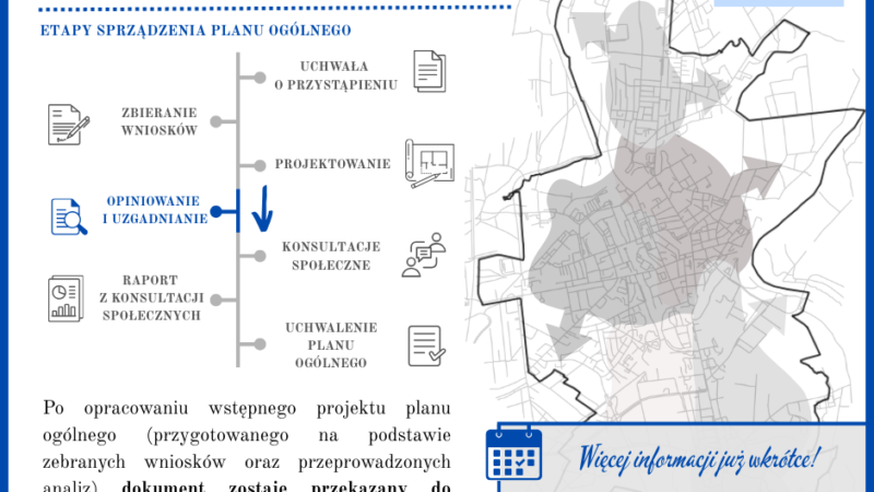 Po zakończeniu etapu opiniowania i uzgadniania, odbędą się konsultacje społeczne i mieszkańcy będą mogli złożyć swoje uwagi do projektu planu ogólnego.