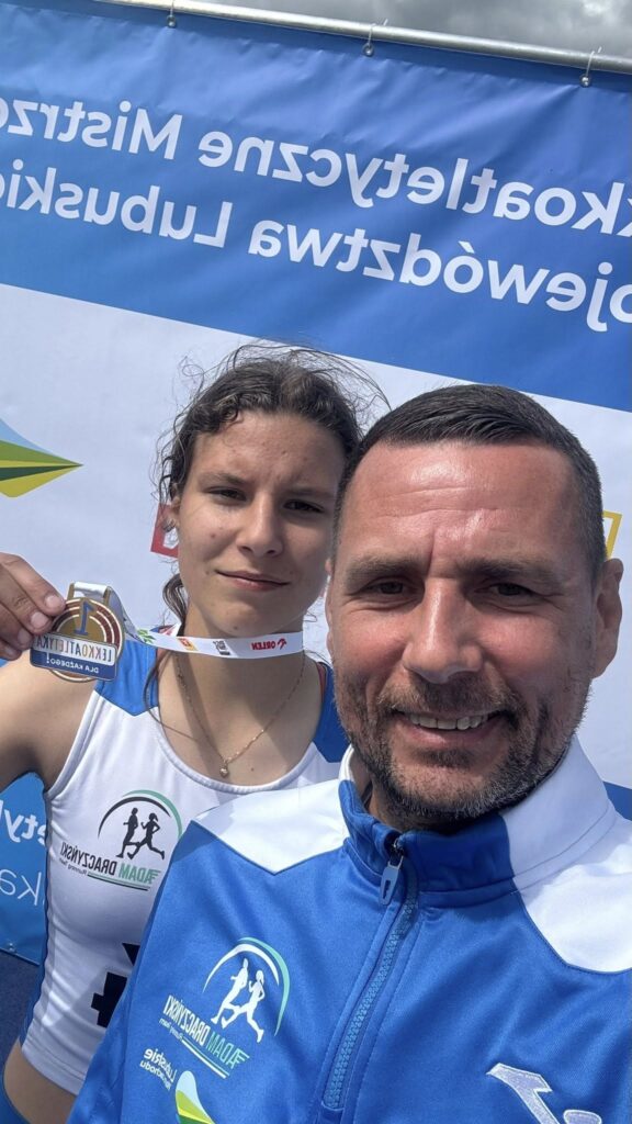 Chciałbym pochwalić wszystkich zawodników, bo wszyscy poprawili swoje rekordy życiowe. Wyróżnić mogę Zuzię Hrebeniuk, która mimo przeciwności regulaminowych zrobiła brąz Mistrzostw Polski LZS. Tydzień później wygrała z lepszymi dziewczynami na Międzywojewódzkich Mistrzostwach Młodzików w Lubinie na 1000 metrów. Wiem, że zawojowałaby też Mistrzostwa Polski, ale koleżanka kopnęła ją w łydkę i Zuzia mocno upadła. Wielkie brawa, że wstała i dokończyła dystans.